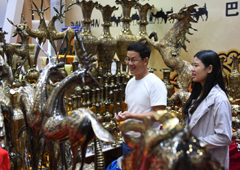 ??? 9月13日,在第14屆中國—東盟博覽會“一帶一路”專題展區,參觀者在選購來自巴基斯坦的產品。第14屆中國—東盟博覽會于12日至15日在廣西南寧舉辦,本屆博覽會首次設立“一帶一路”專題展區,邀請沿線國家企業參展。記者 陸波岸 攝 |
