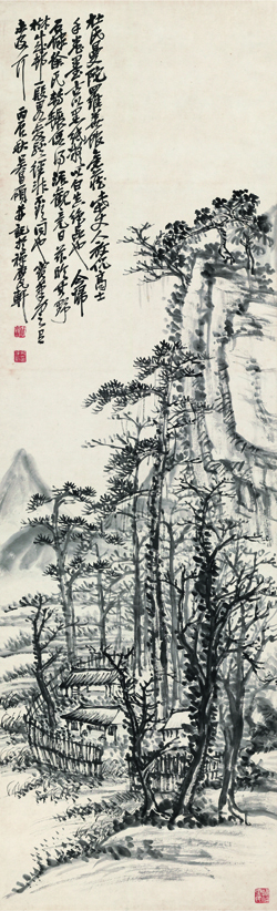 具體來看,今年上海首拍的近現代書畫夜場中,“正道——近現代書畫夜場”精心挑選60余件近現代名家扛鼎力作。張大千的《摩詰詩意圖》、《墨荷圖》,尺幅巨大,且由臺靜農上款。潘天壽《江洲夜泊圖》為潘氏風格已臻成熟期的佳作,明豁嚴實,筆意奔放,超逸空靈而韻味無窮。徐悲鴻的馬已成為中國現代美術史上最經典的意象與符號,《秋風立馬》、《奔馬》均為其畫馬成熟時期的代表作品。齊白石作于1929年的《松鷹》,取縱式構圖,具有強烈的氣勢和無與倫比的力量感。傅抱石是近代中國最有創意的藝術家,以山水畫成就最高,其中《松澗尋幽》與《聽雨圖》,將“抱石皴”的筆法發揮得淋漓精致。黃胄先生創作于1973年的《馴馬圖》構圖獨具匠心,造型準確生動,線條流暢遒勁,筆勢奔放灑脫。