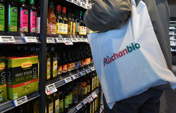 ??? 11月7日,在法國里爾郊區的Bio超市,一名顧客查看有機產品。法國歐尚超市集團開設了一家名為“Bio”的超市,售賣的商品全部為有機產品。新華社/法新 |