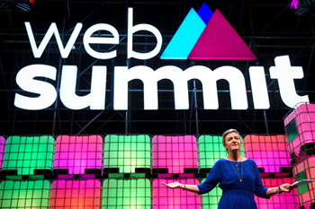??? 11月7日,在葡萄牙里斯本,歐盟委員會負責競爭事務的委員瑪格麗特·韋斯塔格在2017網絡峰會上發言。2017網絡峰會于11月6日至9日在里斯本舉行。新華社/法新 |