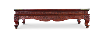 明黃花梨高束腰雕花炕桌 |