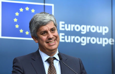 ??? 12月4日,在比利時(shí)布魯塞爾,葡萄牙財(cái)政部長(zhǎng)馬里奧·森特諾出席新聞發(fā)布會(huì)。葡萄牙財(cái)政部長(zhǎng)馬里奧·森特諾在4日的歐元區(qū)財(cái)長(zhǎng)會(huì)上當(dāng)選下一任歐元集團(tuán)主席,將于2018年1月13日就職,任期兩年半。新華社/法新