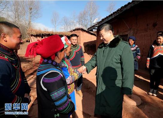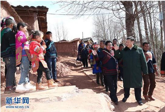 2月11日上午,習近平總書記驅車2個多小時,從西昌市來到位于大涼山深處的昭覺縣三岔河鄉三河村、解放鄉火普村,走進彝族貧困群眾家中,看實情、問冷暖、聽心聲,同當地干部群眾共商精準脫貧之策。新華社記者 謝環馳 攝