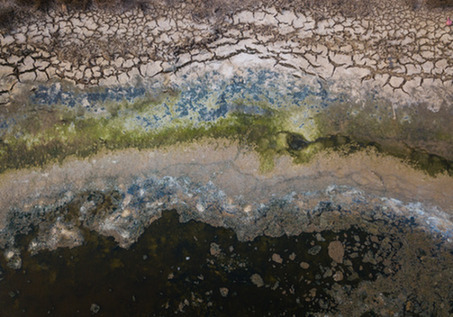 圖為2018年3月30日在江蘇連云港燕尾港鎮(zhèn)化工園區(qū)內拍攝的一處水塘,離海一堤之隔的池塘水和岸灘“五顏六色”。 記者 李響 攝