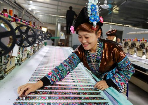 近年來,隨著人們生活水平的提高和傳統(tǒng)文化的復蘇,手工亮布重新受到青睞。融水紅水鄉(xiāng)黃奈苗寨的苗族繡娘抓住這一商機,于2017年初自發(fā)組織建立亮布作坊,她們撿起老手藝,按照傳統(tǒng)工藝制作亮布,并用繡花機生產(chǎn)各種花飾,縫制苗家人鐘愛的亮布衣。截至目前,這個亮布作坊已生產(chǎn)亮布衣1400多件,產(chǎn)品通過互聯(lián)網(wǎng)平臺訂購、銷售,亮布衣制作也成了人們增收的好路子。