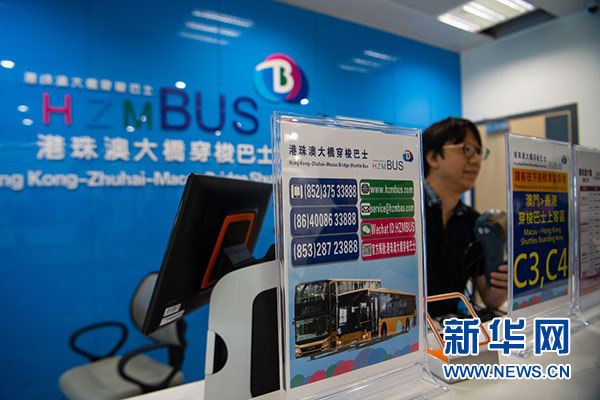 位于港珠澳大橋澳門邊檢大樓的穿梭巴士售票處(10月19日攝)。 新華社記者 張金加 攝