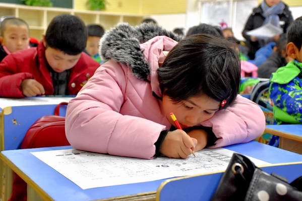 烏什·衢州小學學生在課堂上做題。記者 段敏夫 攝