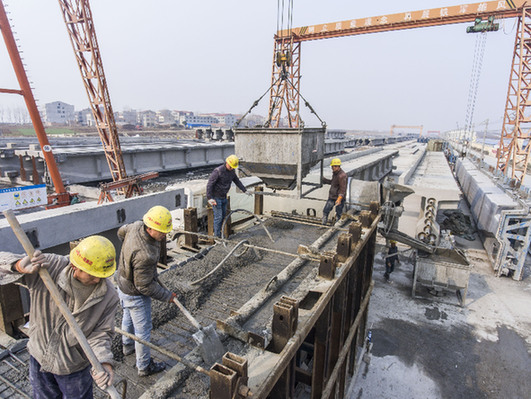 圖為建設者制作蒙華鐵路湖北段最后一片T梁。近日,位于湖北省襄陽市的中鐵十一局蒙華鐵路襄州制梁場完成最后一片T梁的制作,標志著蒙華鐵路湖北段的T梁預制全部完成,為蒙華鐵路按期通車奠定了良好基礎。