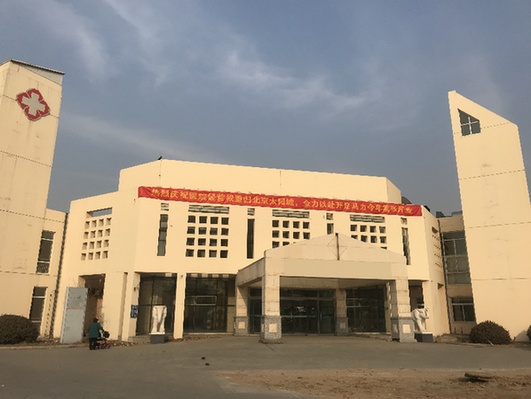 依舊關停的太陽城醫院新掛上了橫幅,上面寫著“熱烈慶祝醫院經營權重歸北京太陽城,全力以赴開足馬力今年重張開業”。郭倩 攝