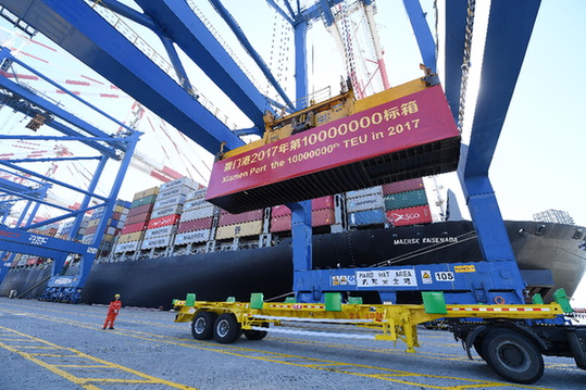 據相關部門數據顯示,目前廈門港共開通集裝箱航線140余條,年集裝箱吞吐量突破1000萬標箱。在“一帶一路”互聯互通方面,廈門共有“一帶一路”海上航線57條、空中航線20條,始發于廈門的中歐班列已通達12個國家30多個城市,實現“絲綢之路經濟帶”和“21世紀海上絲綢之路”的無縫鏈接。