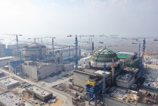 圖為2019年1月31日航拍的中核集團福清核電5號機組(左)和6號機組(右)。記者 薛晨 攝