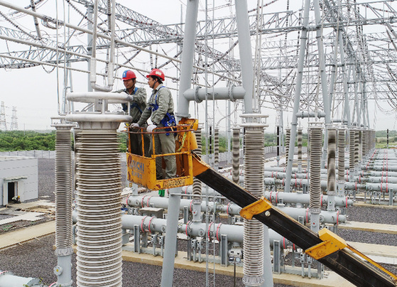 近日,在武漢市東湖高新區(qū)龍泉街,國網(wǎng)湖北送變電工程有限公司施工人員在檢查鳳凰山變電站設(shè)備。記者 肖藝九 攝