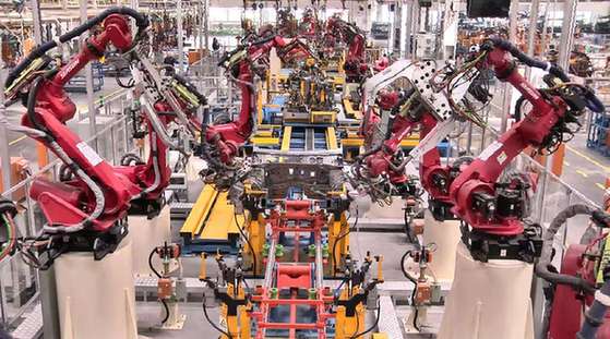 按照寶馬工業標準設計的華晨中華M8X智能化裝焊車間。資料圖片