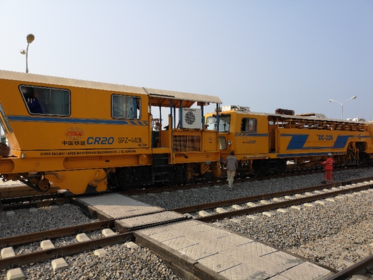 本格拉鐵路項目正式移交簽約儀式近日在安哥拉港口城市洛比托舉行。本格拉鐵路橫貫安哥拉全境,全長1344公里,由中鐵二十局集團公司總承包,全部采用中國鐵路建設標準。這是10月3日在安哥拉的本格拉鐵路洛比托站拍攝的大型維護機械。
