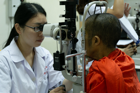 云南省在老撾開展“光明行”活動。新華社發(凱喬 攝)