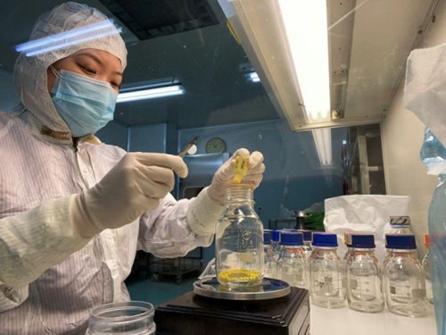 進入車間前,每位員工按集團統一要求更換防護服,并進行洗消作業,確保生產全程無菌。