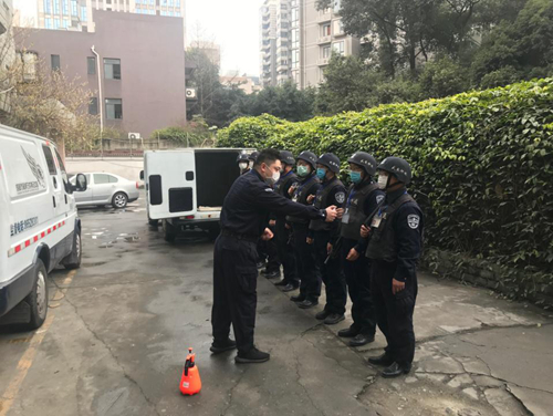 中融安保集團有限責任公司翼虎押運大隊出發前進行消毒準備