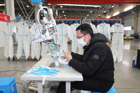 同時,針對醫用防護服緊張的現狀,國機集團下屬恒天重工緊急投入防護服壓條機的研制。在無圖紙缺技術的情況下,恒天重工連續奮戰9天,于2月19日研制成功首臺醫用防護服壓條機,并通過工信部鑒定。2月20日,國機集團下屬企業中國電研成功生產并交付首批醫用防護服壓條機。隨著國機集團壓條機的批量生產,國內醫用防護服緊缺狀況將有效緩解。