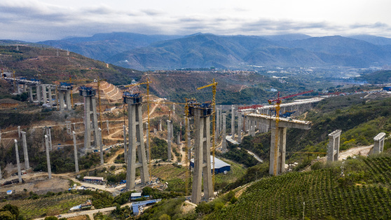 近期,中老鐵路玉溪至磨憨段有序復(fù)工復(fù)產(chǎn),由中鐵四局承建的中老鐵路全線重點(diǎn)控制性工程——元江特大橋、南溪河特大橋正在加緊施工建設(shè)。這是南溪河特大橋橫跨在建高速公路。記者 江文耀 攝