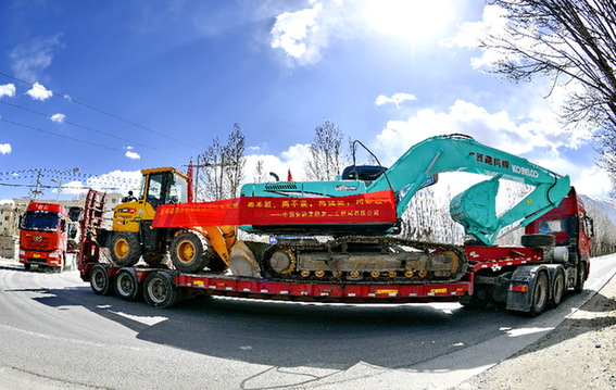 “新基建”加速賦能電網建設。中國安能集團第二工程局有限公司的工程車隊日前從拉薩市曲水縣啟程,奔赴阿里與藏中電網聯網工程建設工地。記者 張汝鋒 攝