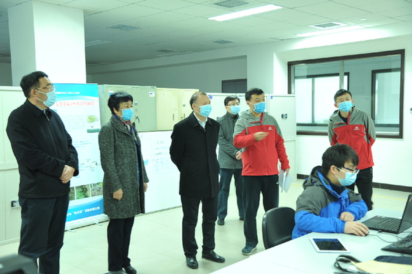 高紅衛(左三)現場調研重大項目疫情防控和復工復產情況。(航天科工集團提供)