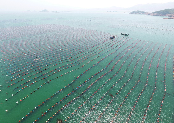坐在自家二層客廳遠眺,連江縣下宮鄉(xiāng)松皋村村民肖華騰可以看見自家的養(yǎng)殖網(wǎng)箱——一大片橙色的塑膠浮球在蔚藍的海面上隨波沉浮,映襯著他今年以來的心情。