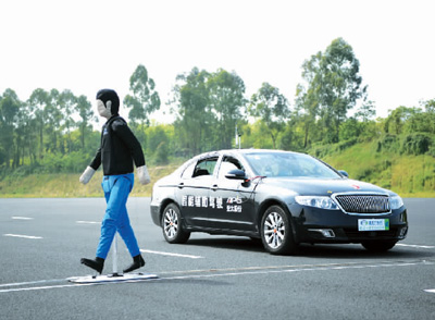 4月7日,在重慶高新區(qū)的國(guó)家質(zhì)檢基地,技術(shù)人員在機(jī)動(dòng)車(chē)強(qiáng)檢試驗(yàn)場(chǎng)內(nèi)進(jìn)行自動(dòng)駕駛功能測(cè)試評(píng)價(jià)。