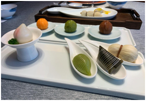 網友最“饞”的還是“一點宴天下”里的點心,包括為2018年首屆進博會歡迎晚宴研發的“荷韻套點”,為2014年亞信峰會期間各國第一夫人定制的“夫人套點”。每套點心里包含多種花樣:有狀似蓮藕、每節一個味道的酥點,做成錦鯉樣子的鱖魚餃子,寓意長享福壽的夾心壽桃……個個小巧別致,形狀逼真,美的像一幅畫,海派風格十足。“精致到骨髓”的點心讓主播遲遲不忍下口,在網友再三催促下,才舍得一個一個吃下,分享口口驚喜,網友隔屏直呼“舒服了”。