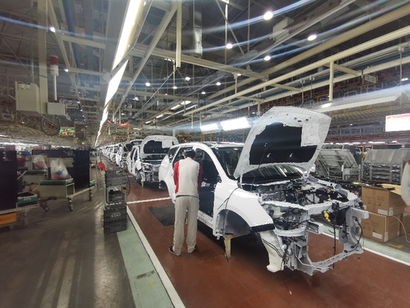 長城汽車天津總裝二車間內,工人在生產線上忙碌。