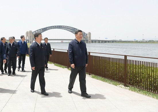 2020年5月11日至12日,中共中央總書記、國家主席、中央軍委主席習(xí)近平在山西考察。這是5月12日中午,習(xí)近平在汾河太原城區(qū)晉陽橋段考察汾河水治理及沿岸生態(tài)保護、城市環(huán)境建設(shè)等情況。 新華社記者 李學(xué)仁 攝