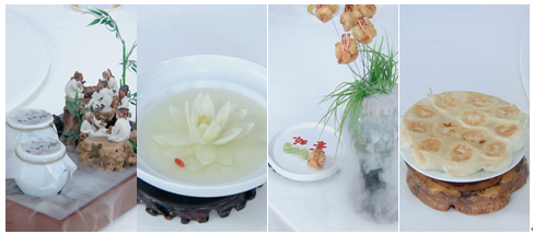 饗有聲色,食有古韻。嘉賓們剛一落坐,隨著音樂的響起,菜品“竹林七賢”在古箏琴韻之中被呈現出來。相傳三國魏正始年間七賢士常聚竹林之下,平時吟詩酒有量,琴音入酒心徜徉。在動人的音樂中,嘉賓們一品由7種菌菇相互融合下“竹林七賢”的滋味,仿佛走進了先賢弄音律,倡自然,崇自由的精神世界。一道菜,不只是陣陣古韻,更是高山流水,各具風采。一細品,不止是濃郁醇厚,更是生命中最好的味道。
