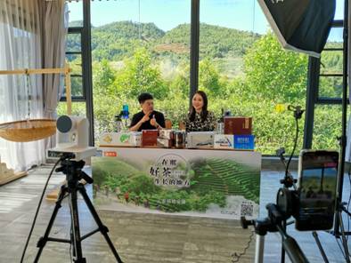 直播活動從云嶺茶莊園觀景臺出發,沿著茶林草共生的高標準生態茶園小徑,進入主會場——云嶺茶莊園玻璃直播間。國家級現代農業產業園示范點云嶺茶莊園,四周群山環抱,云蒸霞蔚,層層茶園和郁郁蔥蔥的山林成為直播最美背景。