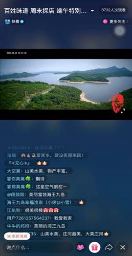 汪洋萬頃青于靛,小嶼珊瑚列畫屏。6月26日上午,在新華社“快看”抖音直播間,“百姓味道周末探店”端午特別節目來到位于黃海北岸的大連莊河市王家鎮,面朝大海賞莊河美景、品山珍海味,與全國網友共享視覺與味蕾的雙重盛宴。在兩個多小時的直播中,新華社“快看”抖音直播間累計觀看人次近十萬,廣大網友熱情留言、比心點贊,大美莊河給大家留下了深刻的印象。
