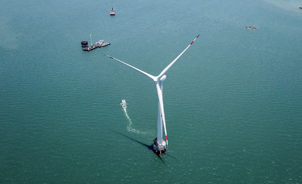 東方電氣與三峽集團聯合研制的亞洲第一、全球第二海上風電機組成功并網發電。資料照片