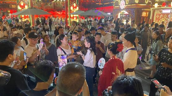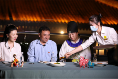 直播當日,在如畫卷般的長安夜色中,主持人和大唐不夜城“唐妞”、曲江文旅“李白”一起漫步大唐不夜城,探訪“盛世長安”的人間煙火。在“唐食坊”內(nèi),主持人和嘉賓走街串店,品嘗了團扇酥、杏酪酥、貴妃稠酒、長安冰酪等原汁原味的唐朝美食,還為大家介紹了唐代的禮儀與風俗。文創(chuàng)產(chǎn)品“長安冰酪”的亮相引發(fā)網(wǎng)友熱議,“大雁塔”和“唐仕女”造型的創(chuàng)意冰激凌,由身穿古代服飾的“店小二”遞到手里,瞬間就有了穿越唐朝的感覺。除了美食之外,在大唐不夜城街區(qū)上還有“真人不倒翁”“武士雕刻”“懸浮李白”等藝術表演。歷史和現(xiàn)代交相呼應,文化和潮流完美碰撞,讓大家宛如踏入盛唐繁華的都市勝景。