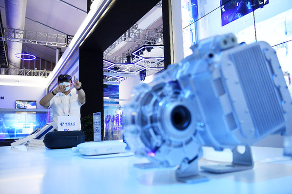 9月15日,2020線上中國國際智能產業博覽會在重慶開幕。圖為工作人員在智博會上演示“5G+AR遠程運維技術”。