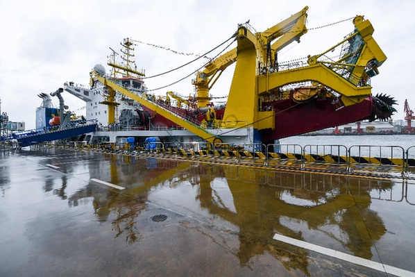 我國自主研發(fā)的重型自航絞吸船“天鯤號”亮相2020中國海洋經(jīng)濟(jì)博覽會。記者 毛思倩 攝