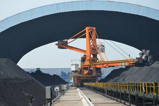 圖為斗輪機開足馬力進行來煤堆卸