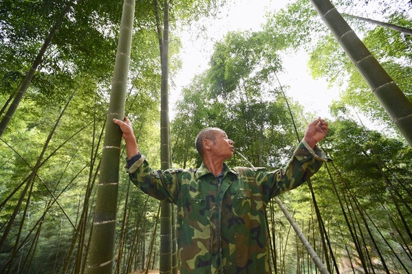 三明永安市洪田鎮湍石村村民在查看毛竹長勢。記者 姜克紅 攝