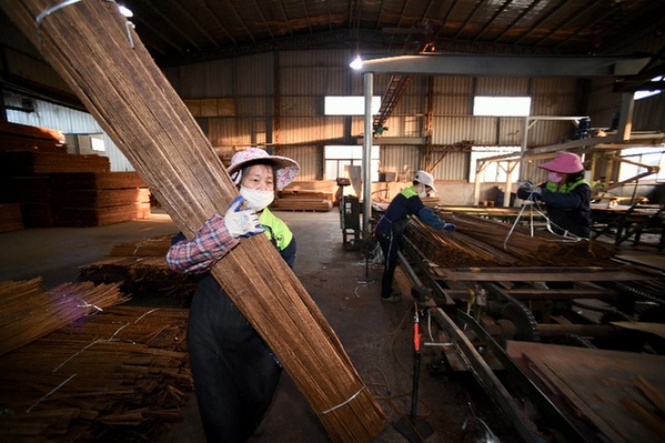 “禁伐木材給公司竹制板材產品帶來巨大成長空間。”公司董事長尹毅劍說,公司每年可為竹種植戶帶來500多萬元收益,同時吸納近百人就業。
