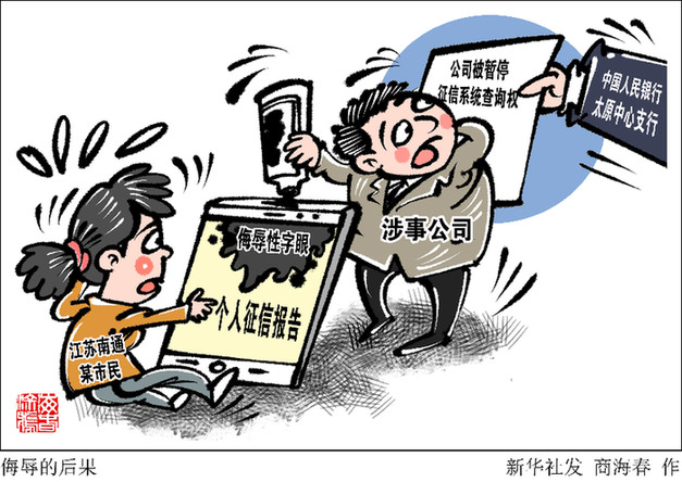????近日,江蘇南通市民房女士在查詢個人征信報告時發現,職業信息“工作單位”一欄中出現侮辱性字眼。經中國人民銀行南通中心支行協調,目前作為信息報送方的晉商消費金融對該信息作出刪除處理。