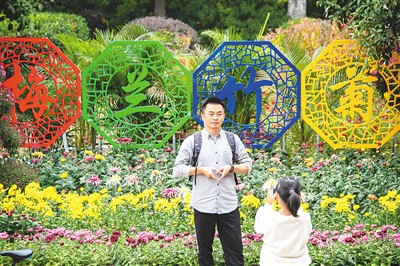 ??? 今年以來,湖北經(jīng)濟(jì)復(fù)蘇勢頭良好。圖為10月31日,游客在武漢琴臺綠化廣場賞菊拍照。 伍志尊攝(新華社發(fā))