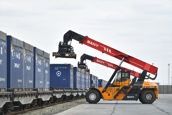 工人在鹽湖進(jìn)行卸貨作業(yè)。記者 潘彬彬 攝