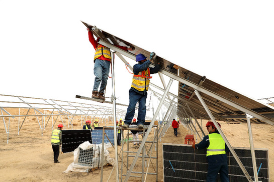 工人在國家能源集團寧夏電力公司200萬千瓦光伏項目現場安裝設備。(受訪者供圖)