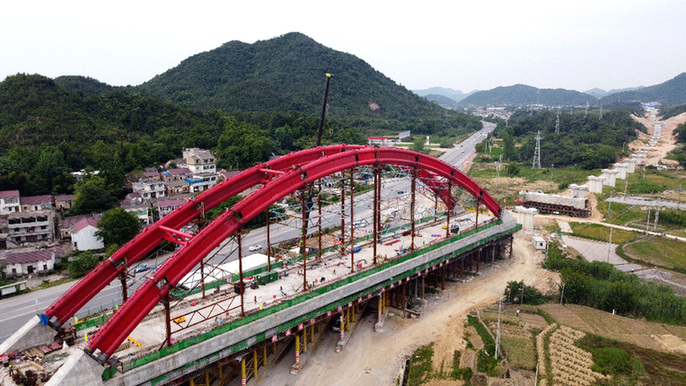 當日,由皖贛鐵路安徽公司承建、中鐵十一局施工的池(州)黃(山)鐵路白沙鋪特大橋128米系桿拱順利合龍,為后續工程施工提供了保障。池黃鐵路全長約125公里,設計時速350公里,是武(漢)杭(州)快速鐵路通道的重要組成部分。