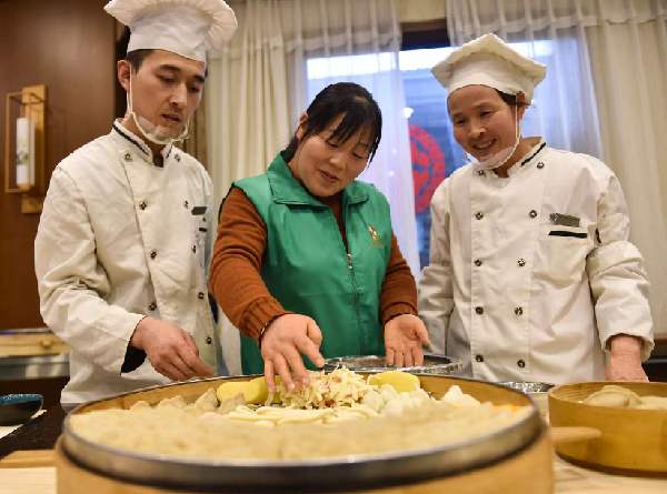 山西省呂梁市嵐縣的學員學習制作“土豆宴大豐收”。本報記者 柴婷 攝