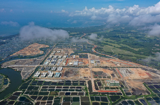 這是正在建設中的文昌馮家灣現代化漁業產業園(6月1日攝,無人機照片)。新華社記者 郭程 攝
