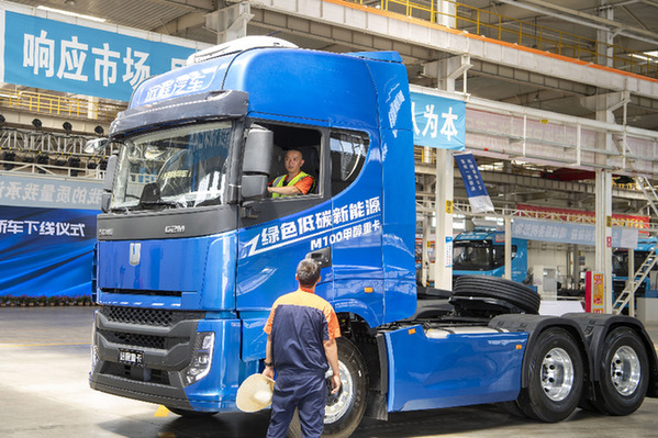山西新能源汽車工業有限公司(吉利晉中基地)總裝車間內,工作人員駕駛甲醇汽車進行出廠前的調試。新華社記者 楊晨光 攝