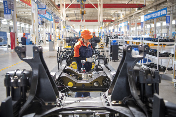 山西新能源汽車工業有限公司(吉利晉中基地)總裝車間內,工作人員在生產甲醇汽車。新華社記者 楊晨光 攝