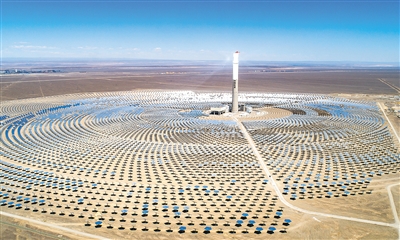 中國(guó)能建投資建設(shè)的哈密50兆瓦熔鹽塔式光熱發(fā)電項(xiàng)目。資料照片